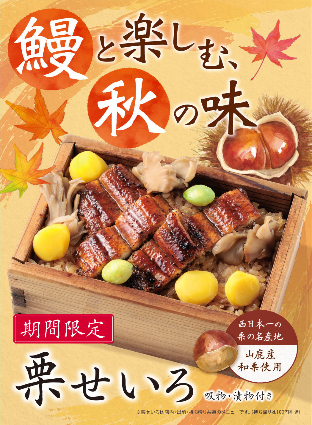 うなぎの蒲焼と上品な甘さのある栗、秘伝のタレが染み込んだご飯を蒸し上げました。